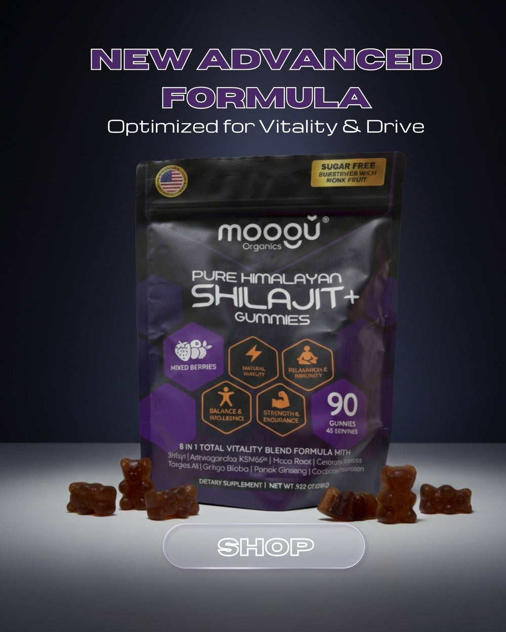 Moogu Shilajit 8-in-1 Max Strength Gummies