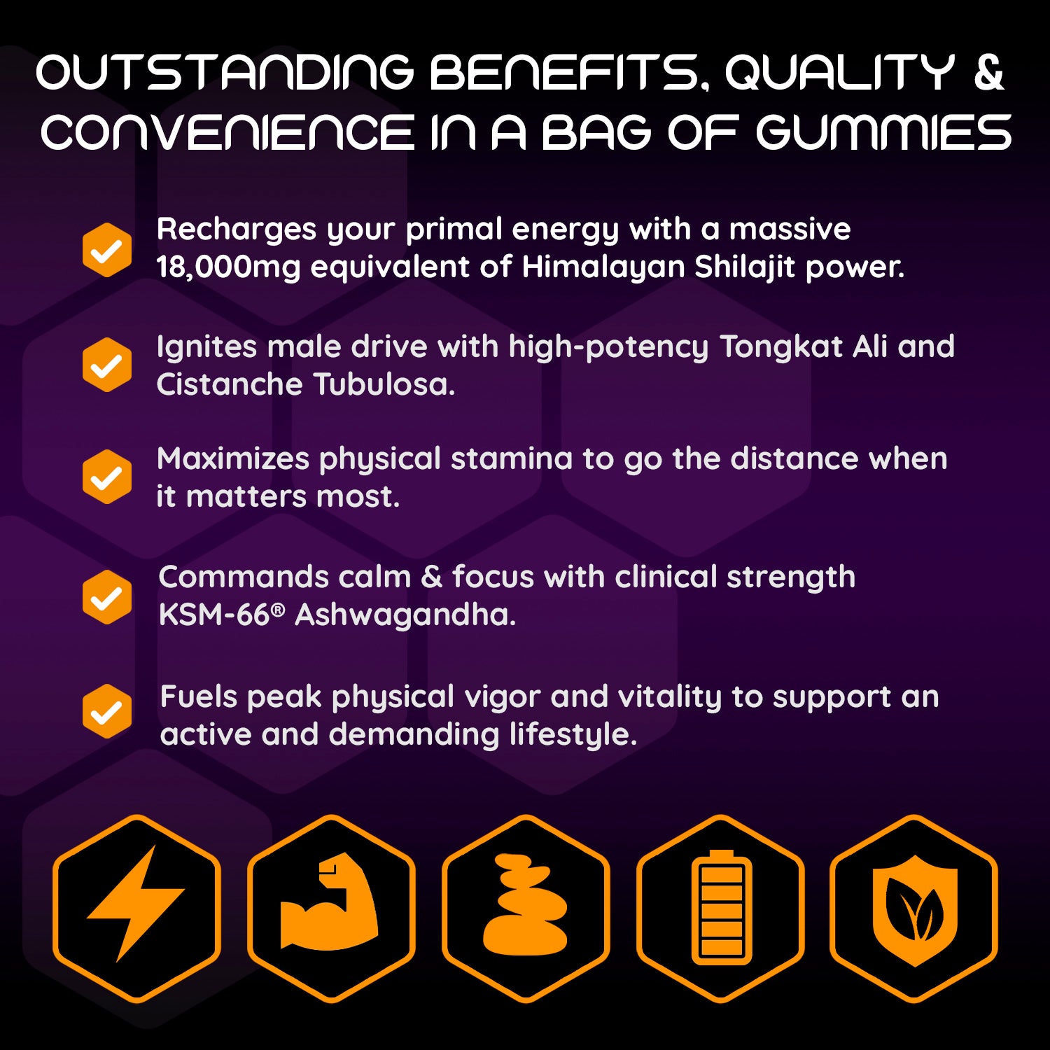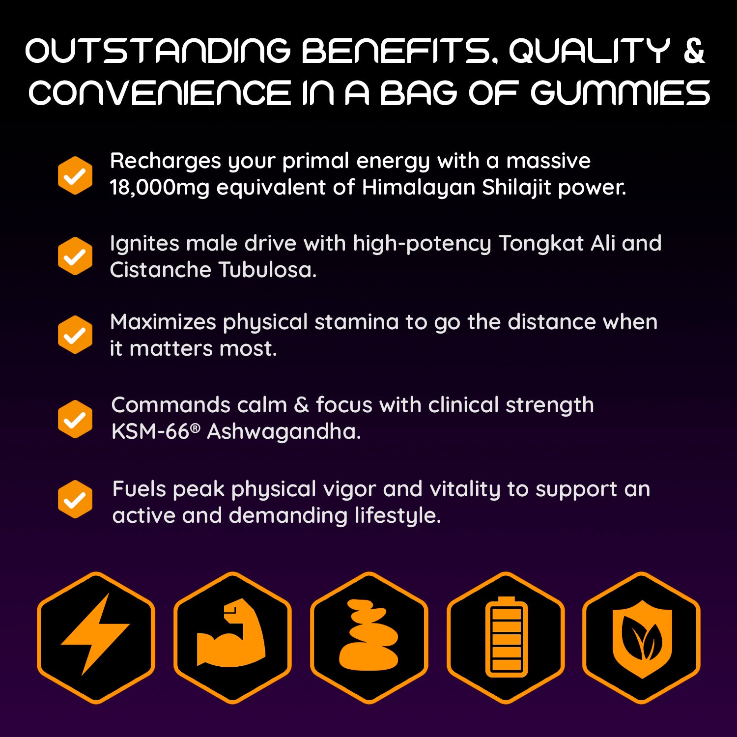 • Elite 8-in-1 Performance Stack: A high-concentration formula engineered with 30:1 Shilajit and 100:1 Tongkat Ali for maximum masculine drive.