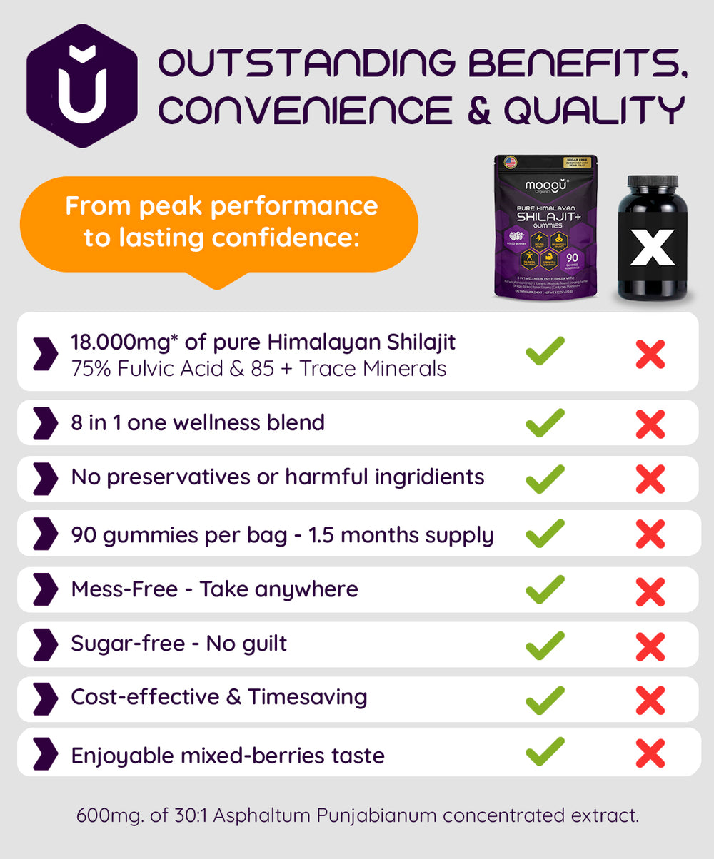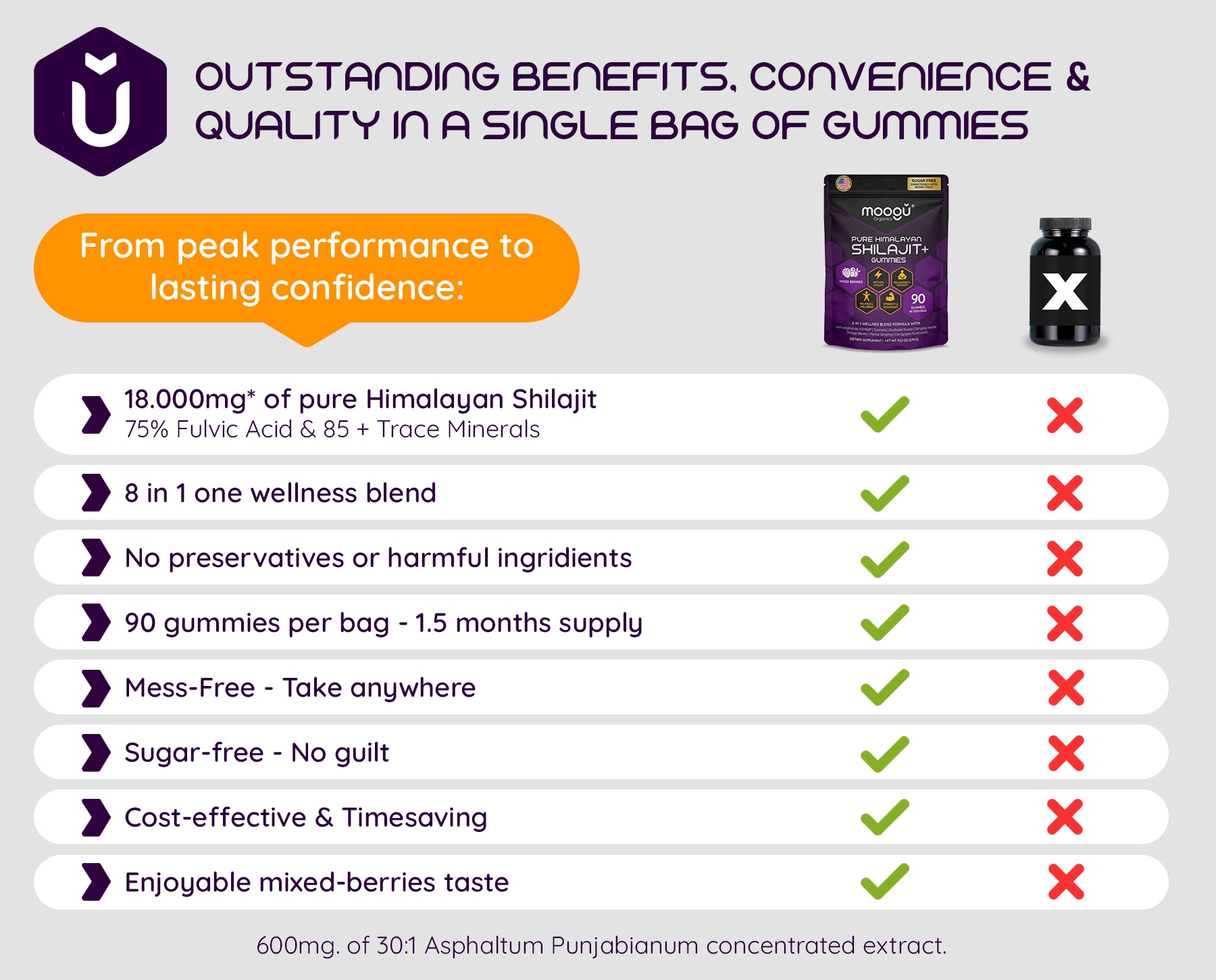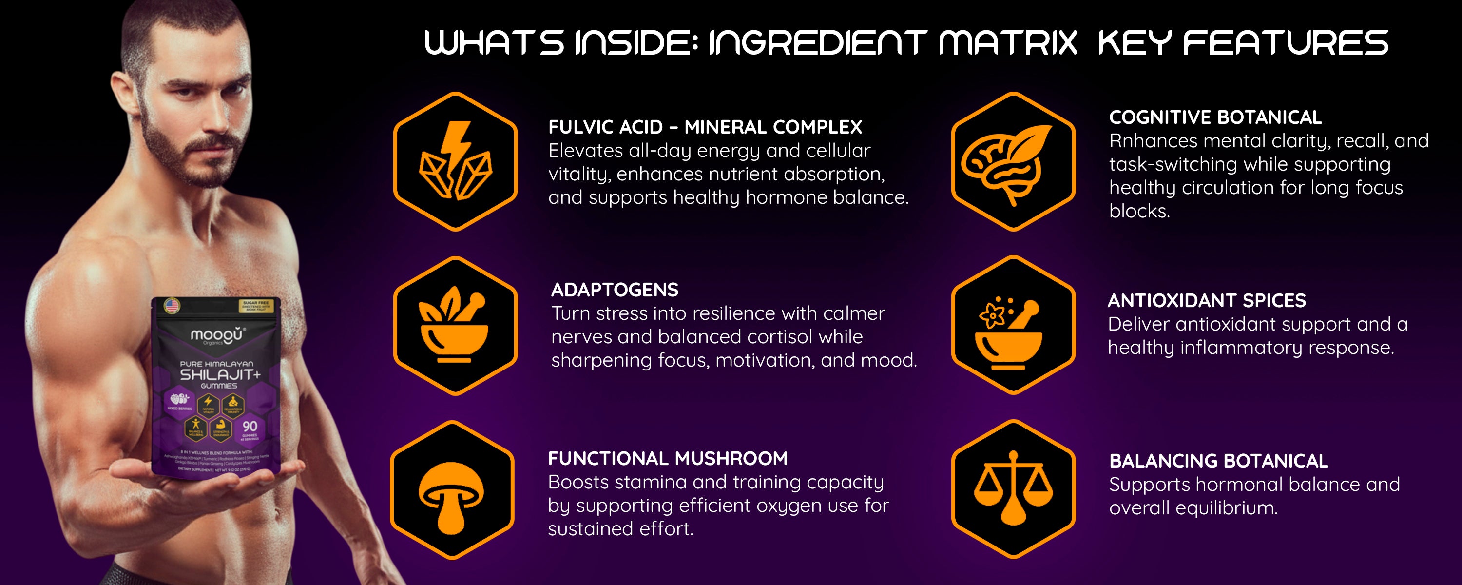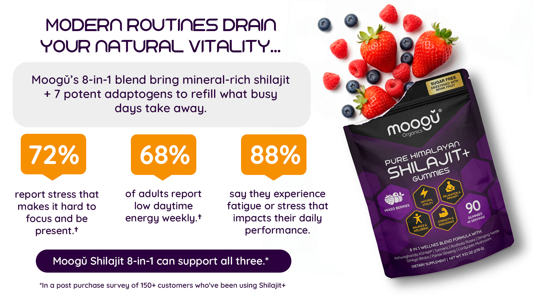 “I created Moogu Shilajit gummies to make daily vitality simple—two gummies for steady energy, clear focus, and a calmer mind to process what matters. I also wanted a formula that helps men feel naturally confident and connected with their partners.”