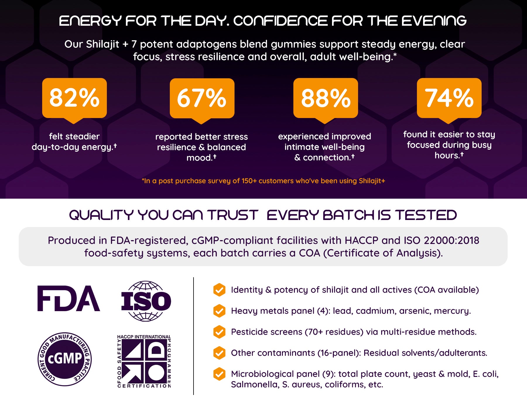 • Elite Manufacturing Standards: Produced in FDA-registered facilities under strict cGMP, HACCP, and ISO 22000:2018 food-safety protocols.
